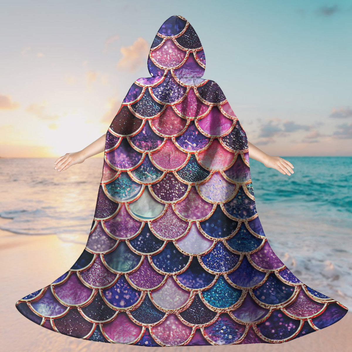 Gearhumans 3D The Most Pink Sparkle Mermaid Tail In The Ocean Custom Hooded Cloak