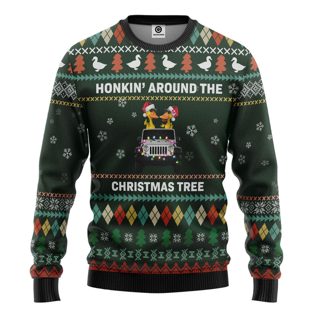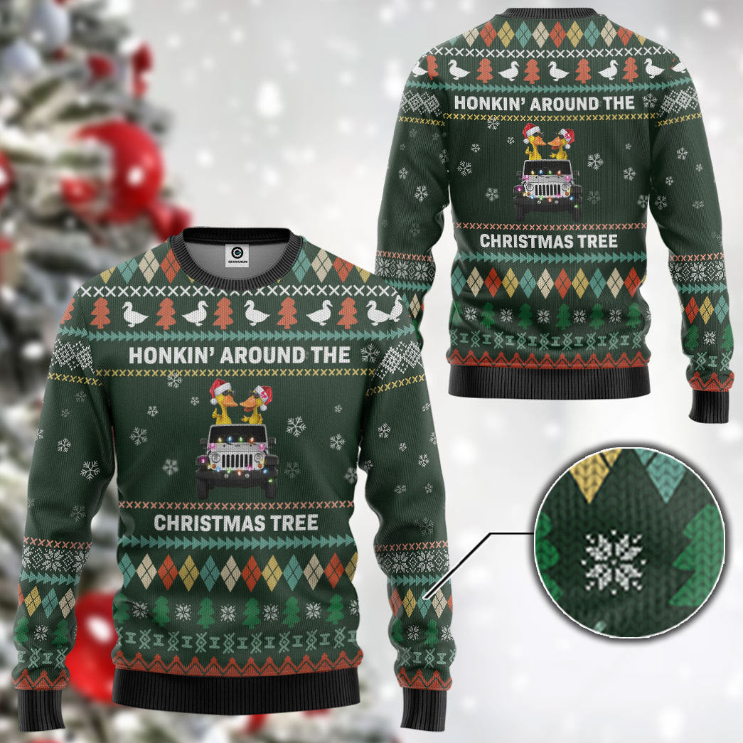 Gearhumans 3D Travelling Duck Red Truck Christmas Custom Ugly Sweater