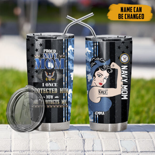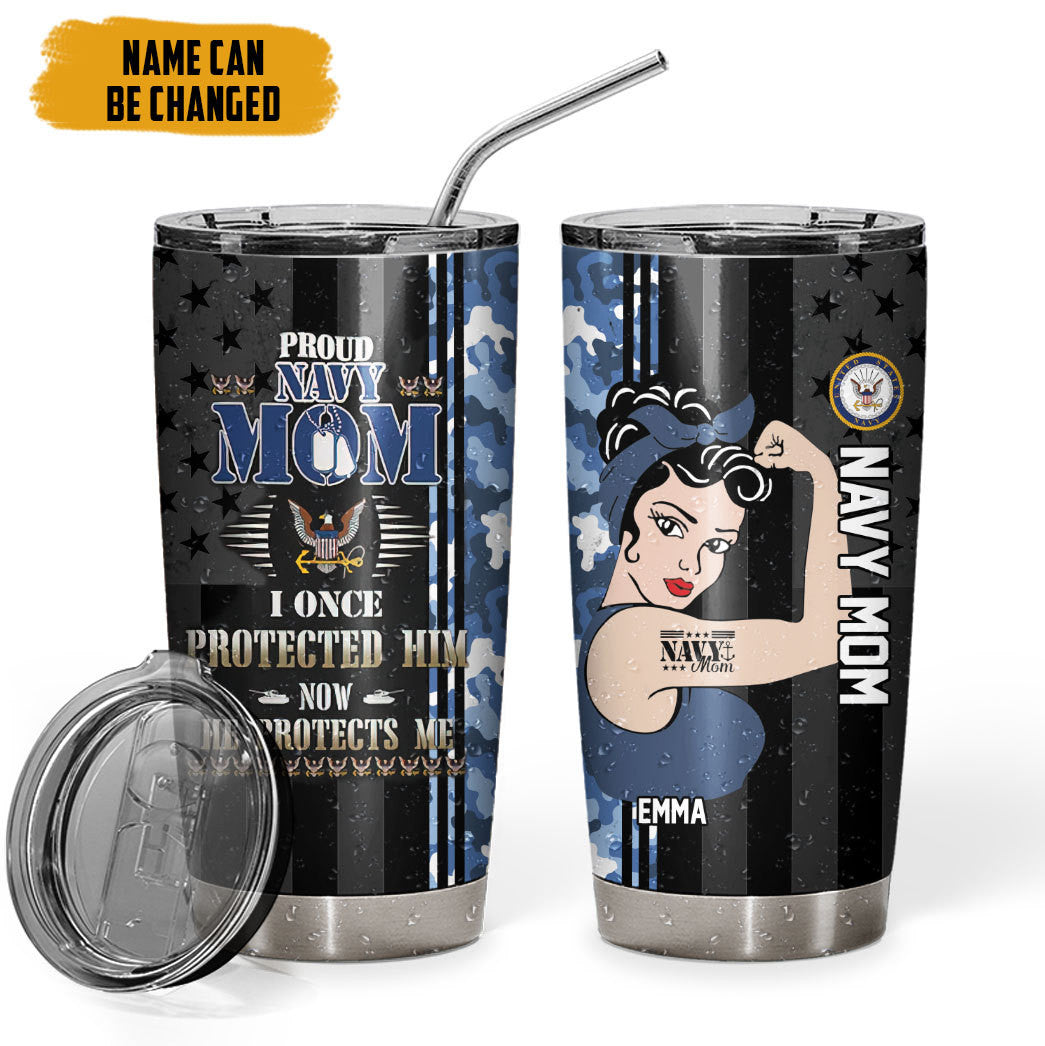 Gearhumans 3D US Navy Mom Mothers Day Custom Name Design Insulated Vacuum Tumbler