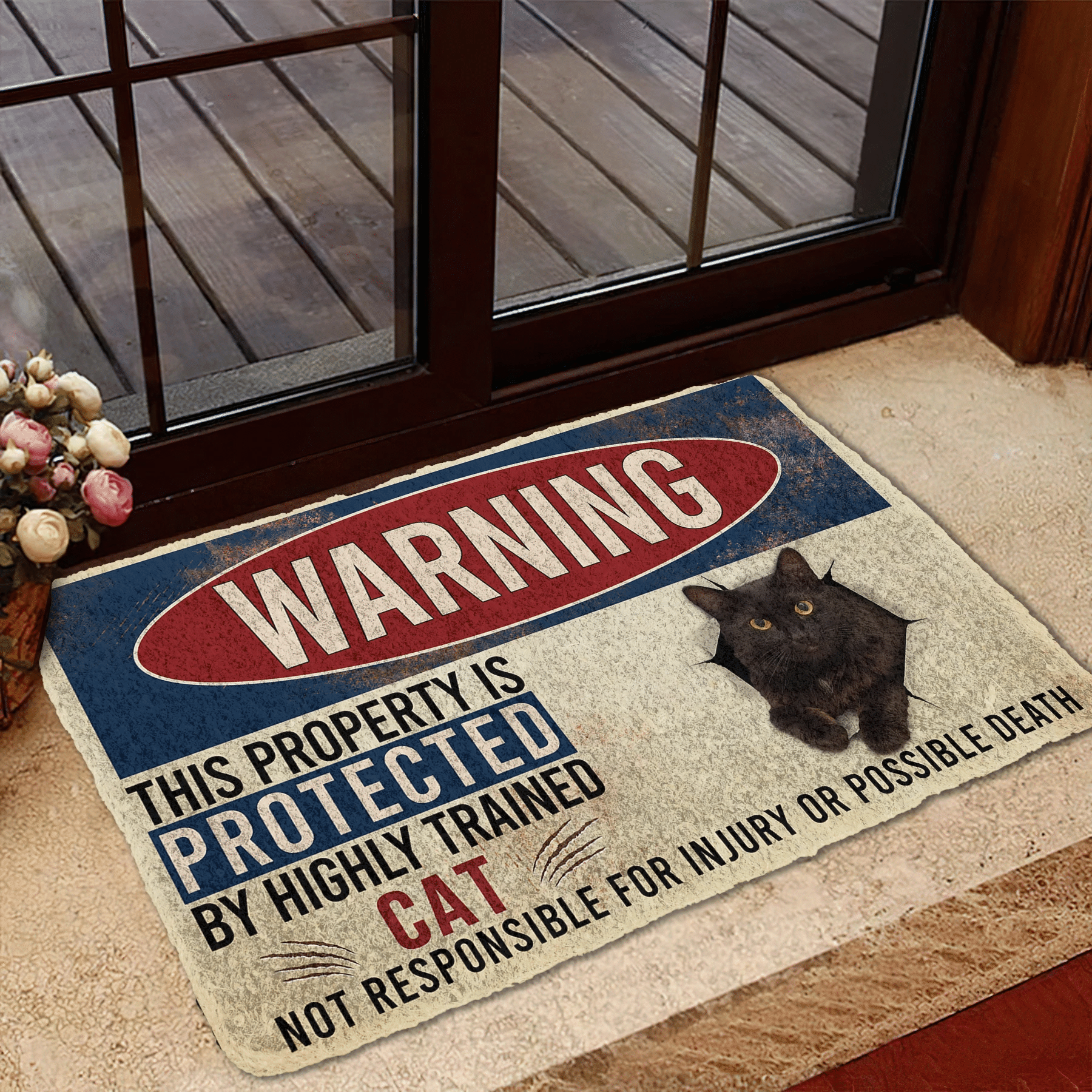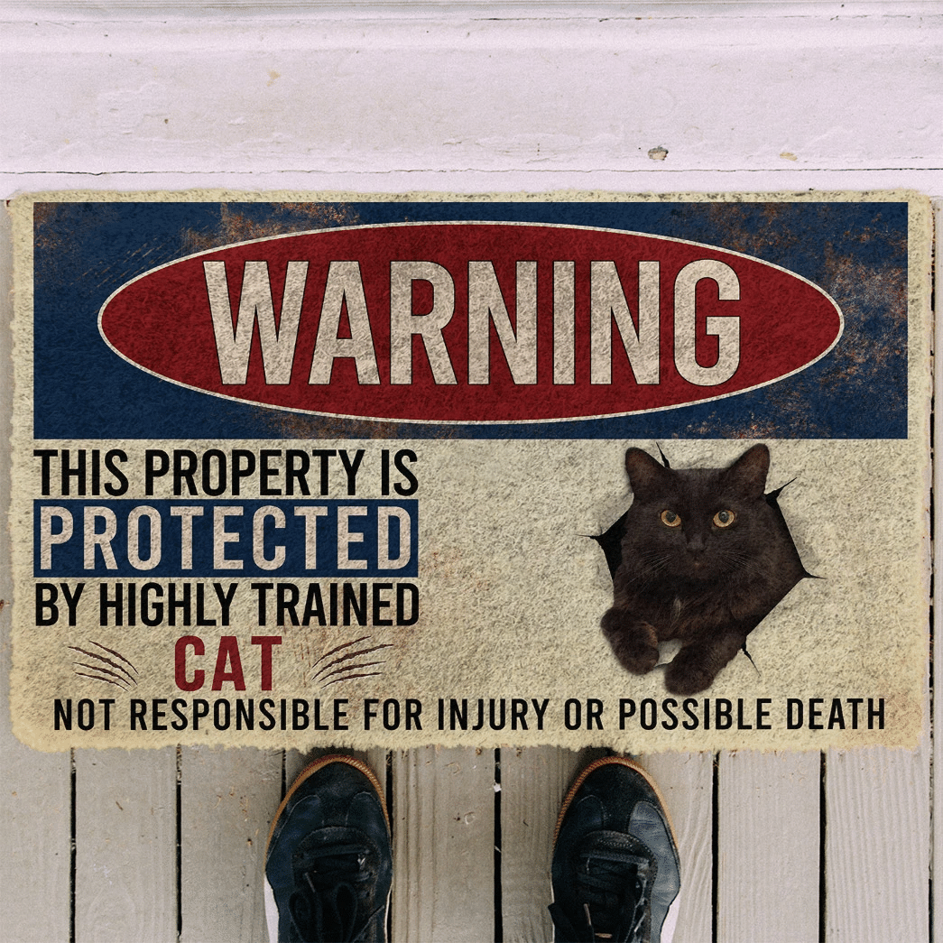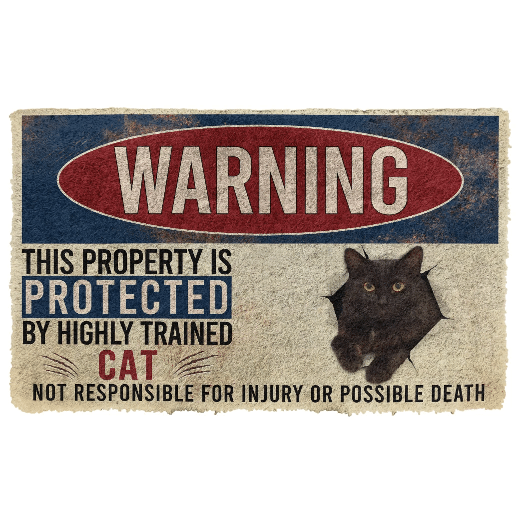 Gearhumans 3D Warning This Property Protected By Black Cat Custom Doormat