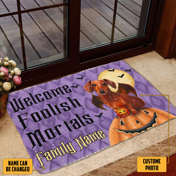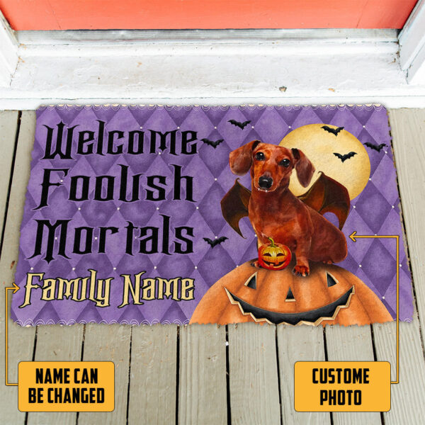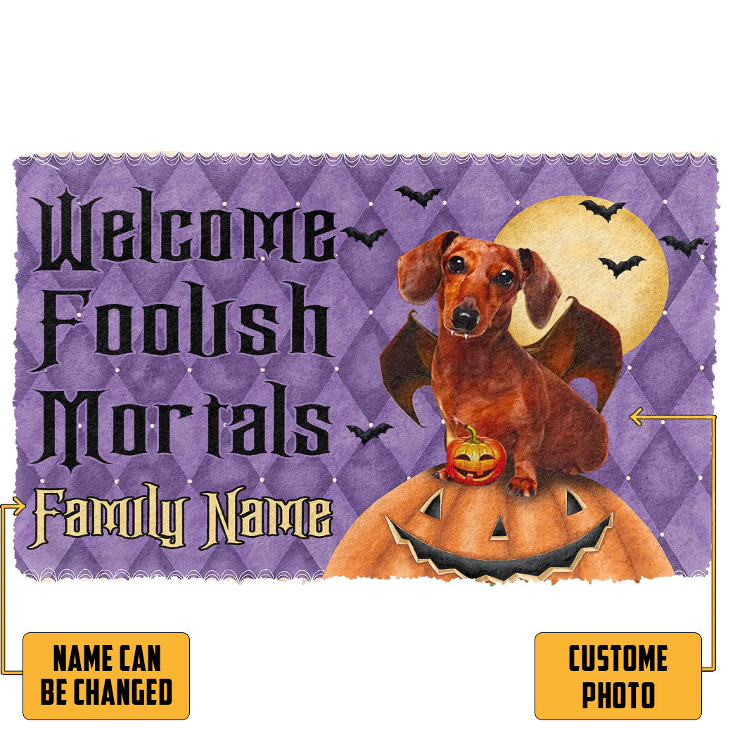 Gearhumans 3D Welcome Foolish Mortals Halloween Vampire Dog Custom Name Custom Photo Doormat