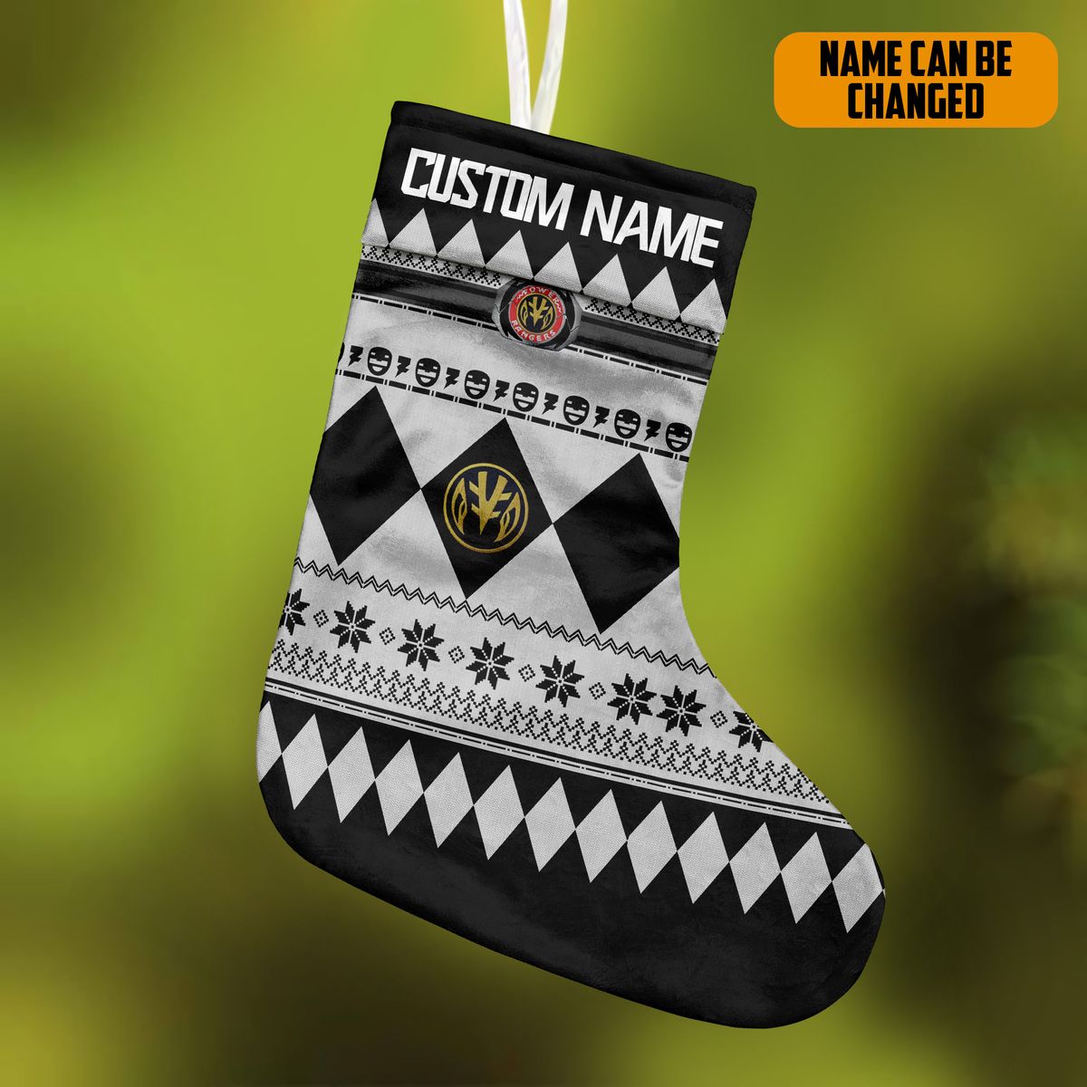Gearhumans 3D White Mighty Morphin Power Ranger Ugly Custom Name Christmas Socks