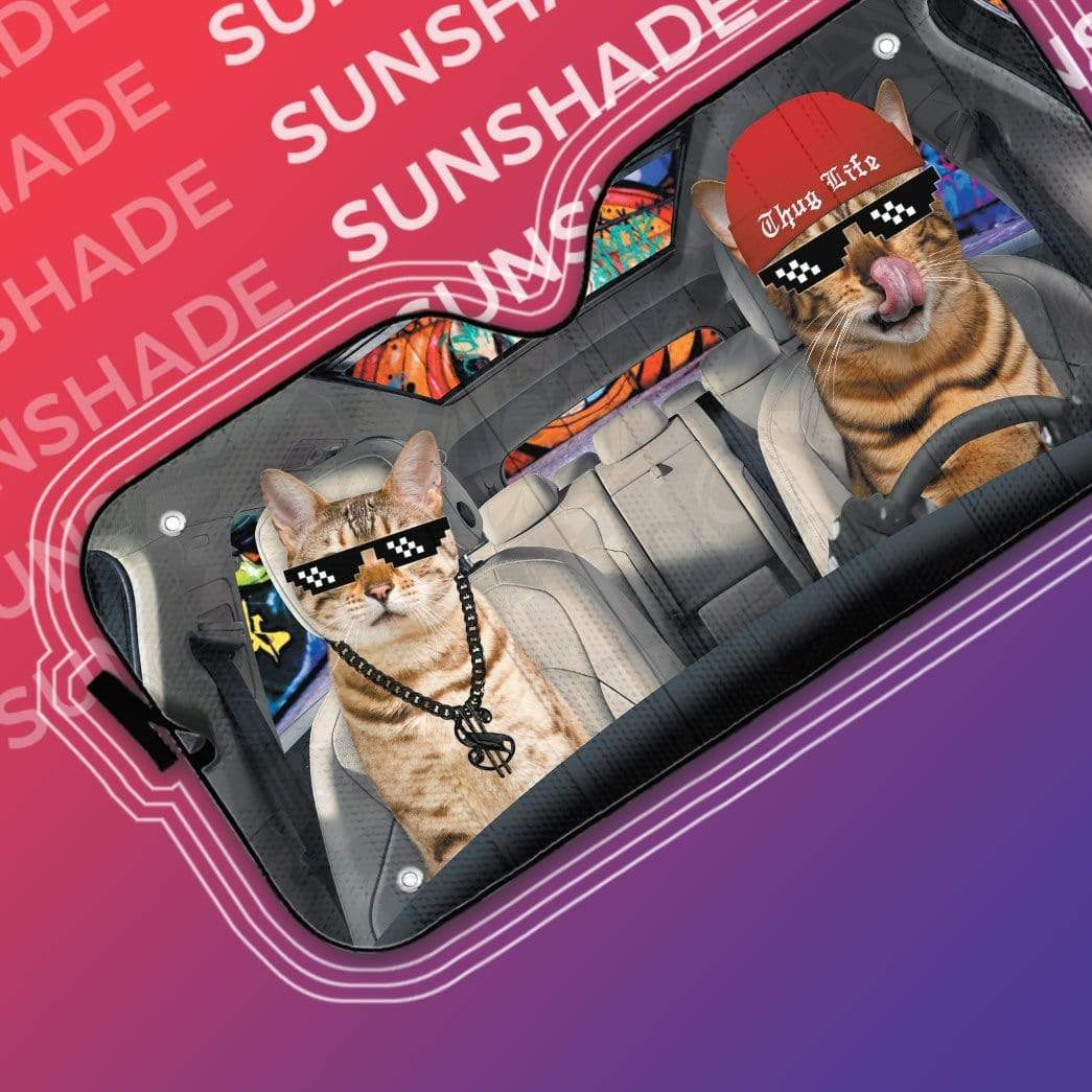 Gearhumans 3D Couple Bengal Cat Custom Car Auto Sunshade