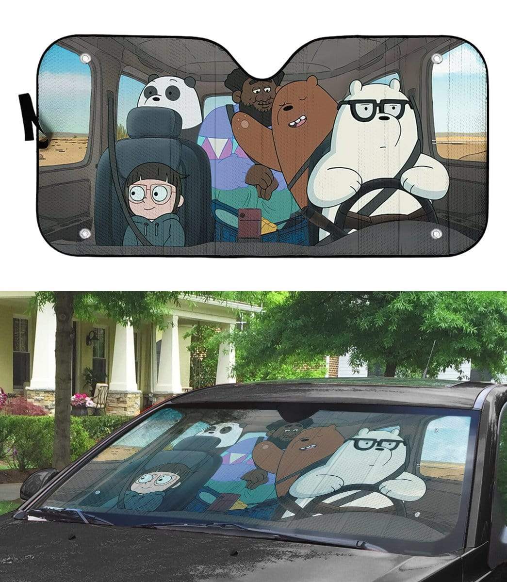 Gearhumans 3D We bare bears Happy Custom Car Auto Sunshade