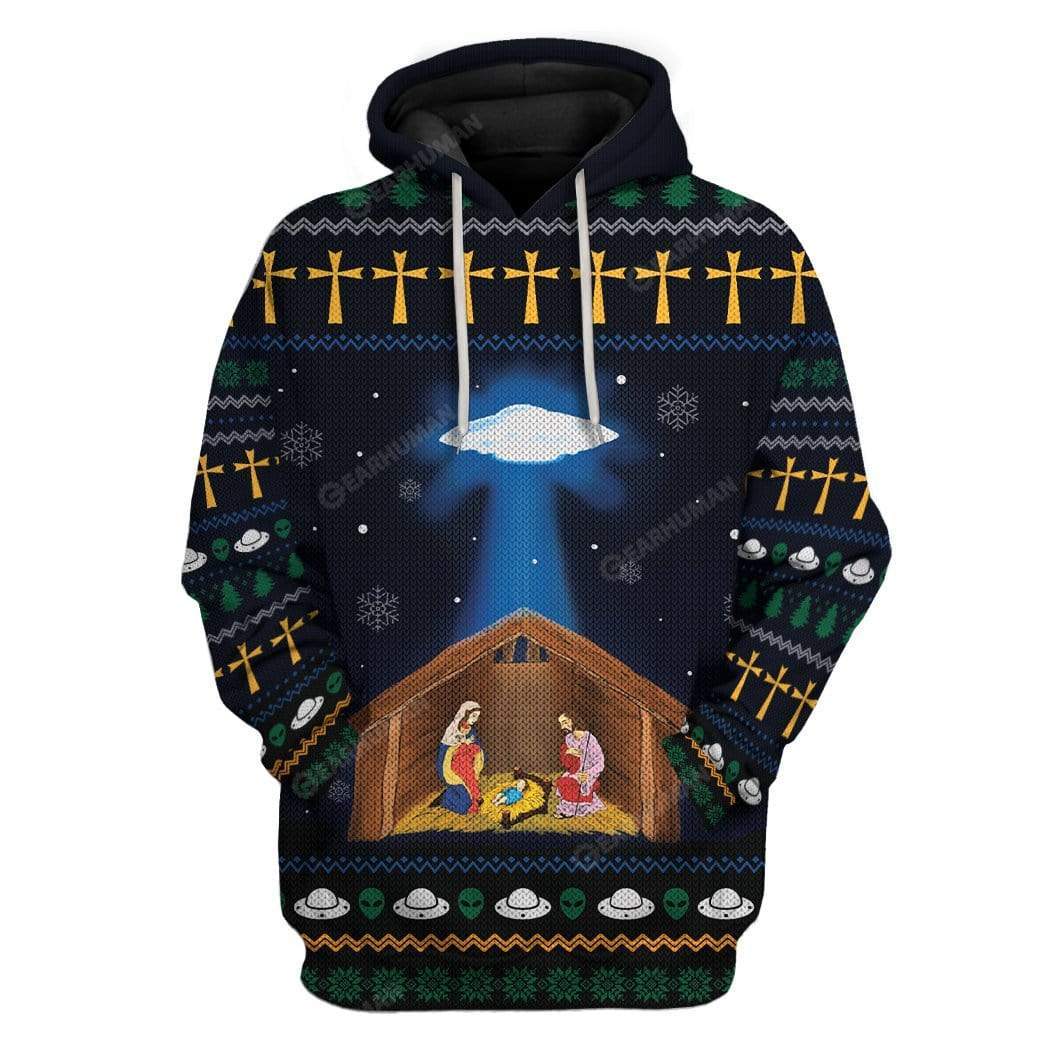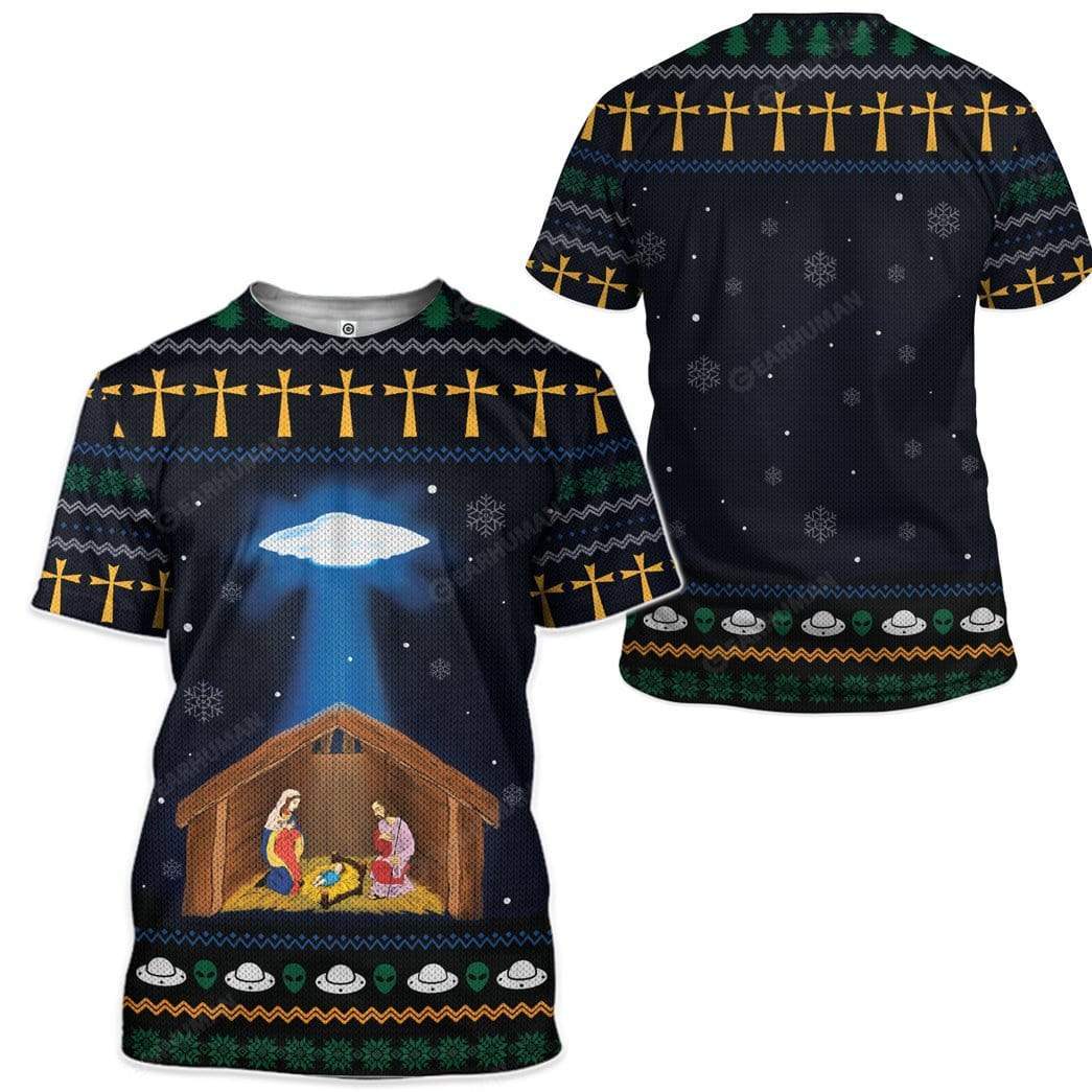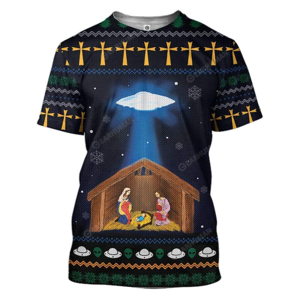 Gearhumans Ugly Jesus Nativity With UFO Star Custom T-shirt – Hoodies Apparel