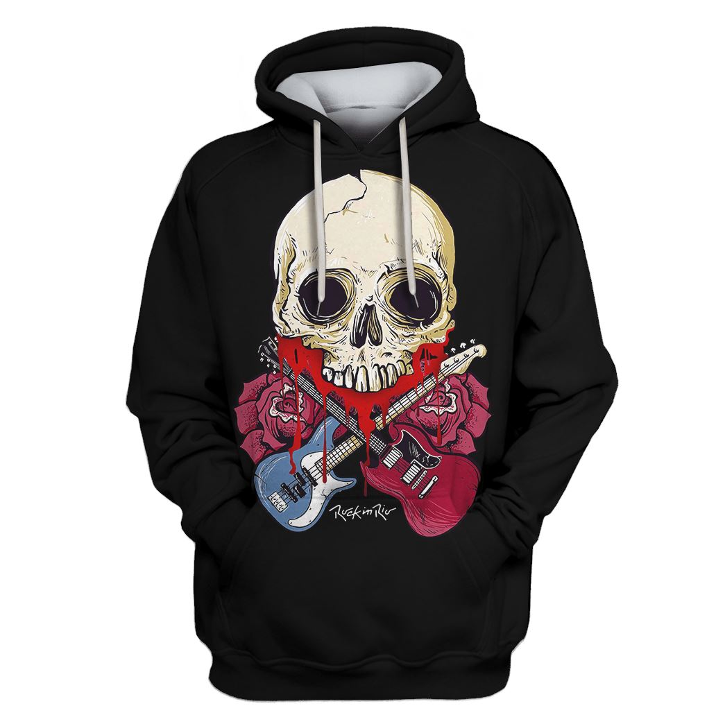 Gearhumans Rock And Roll Skull Guitar Custom T-shirt – Hoodies Apparel