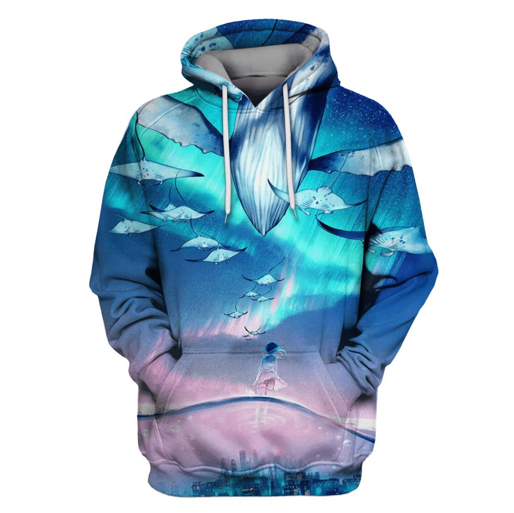 Gearhumans The little girl seeing whales in the sea Custom T-shirt – Hoodies Apparel