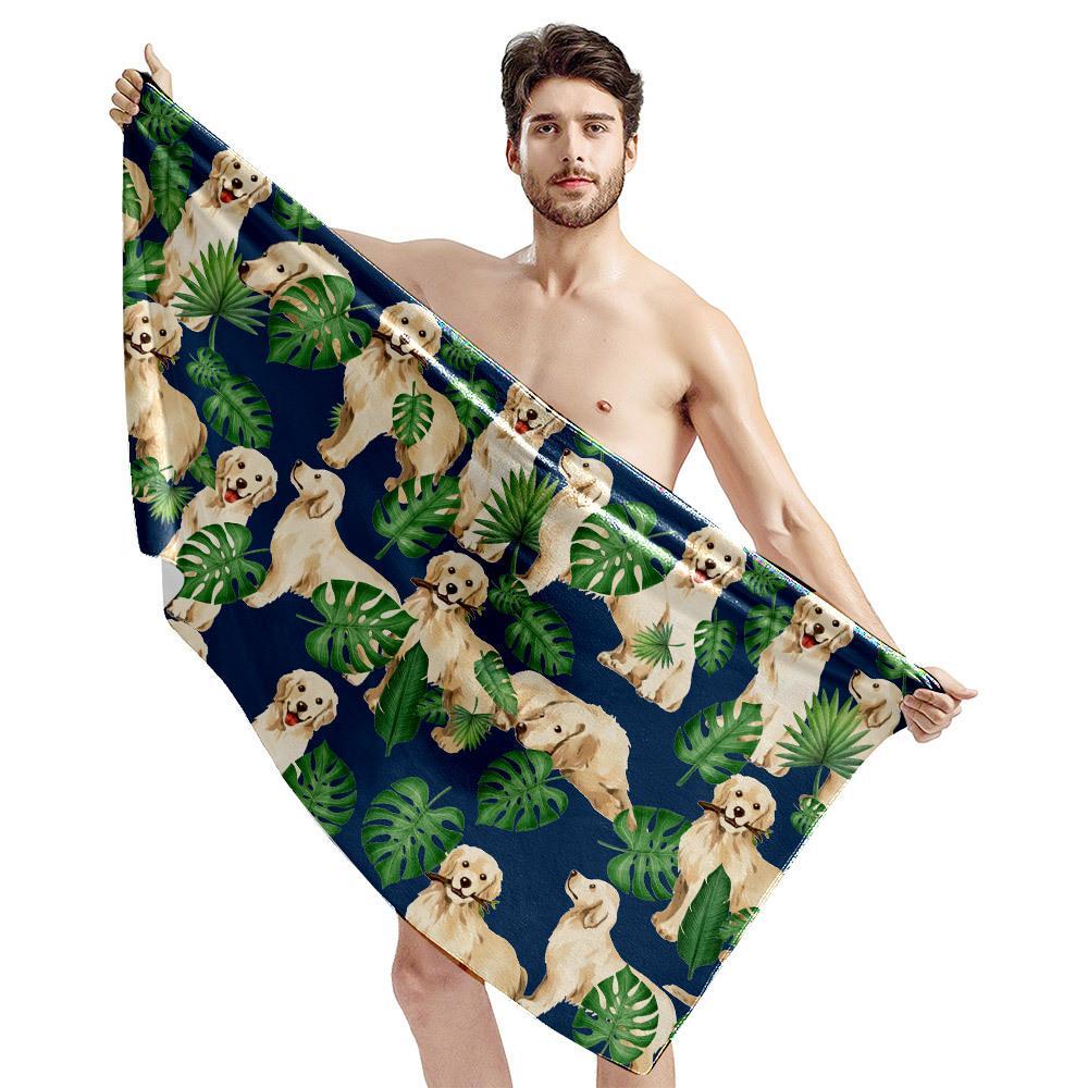 Gearhuman 3D Tropical Golden Retrievers Beach Towel