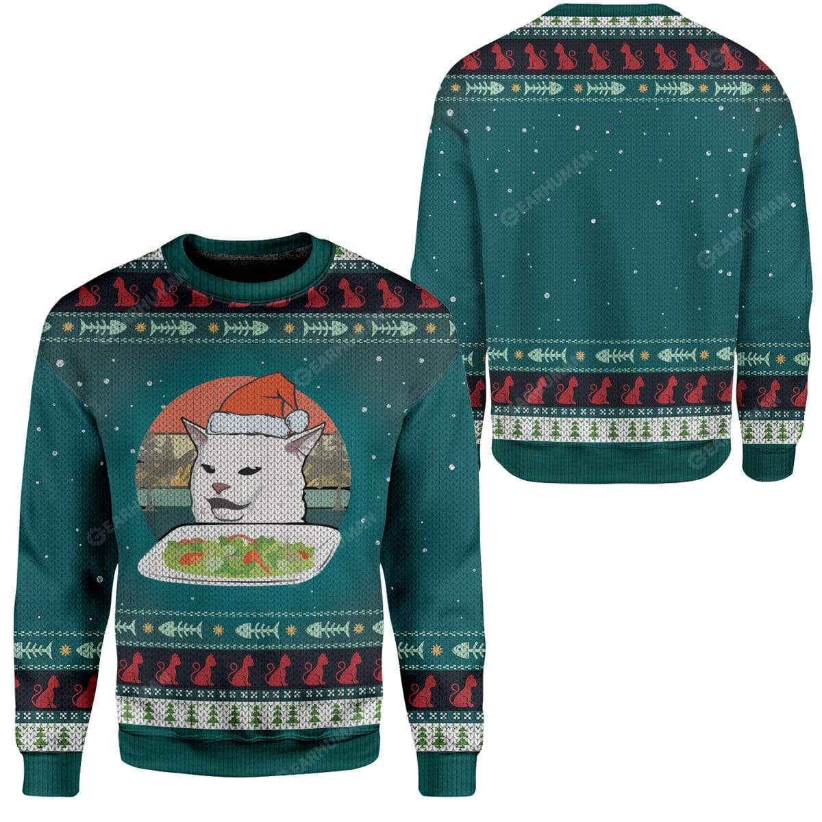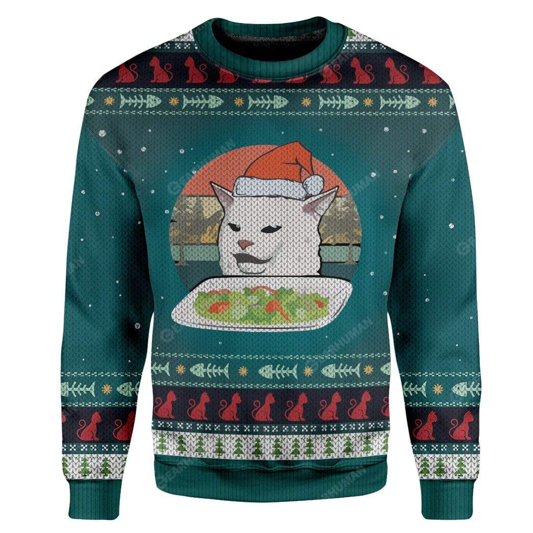 Gearhumans Ugly Christmas Cat Custom Sweater Apparel