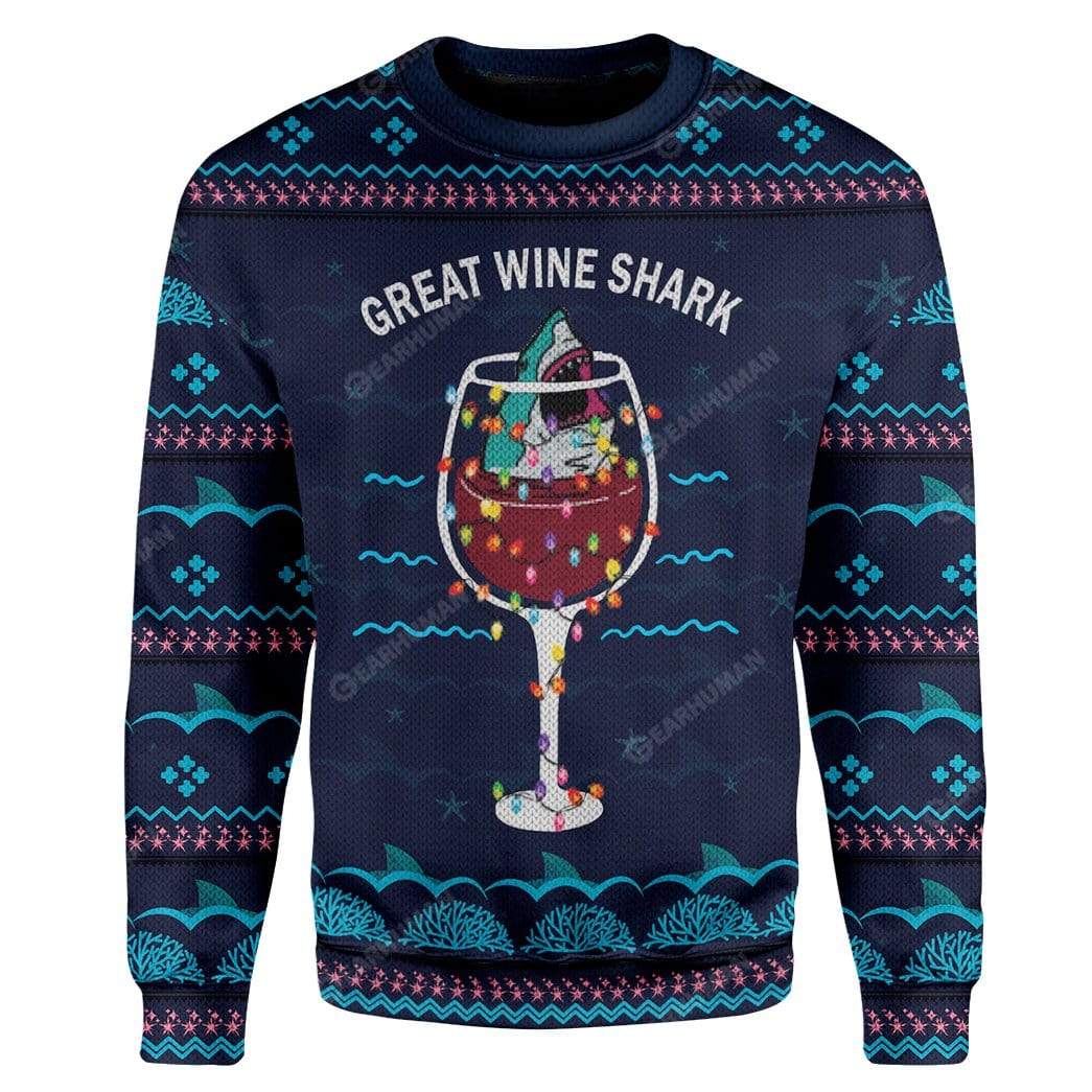 Gearhumans Ugly Christmas Great Wine Shark Custom Sweater Apparel