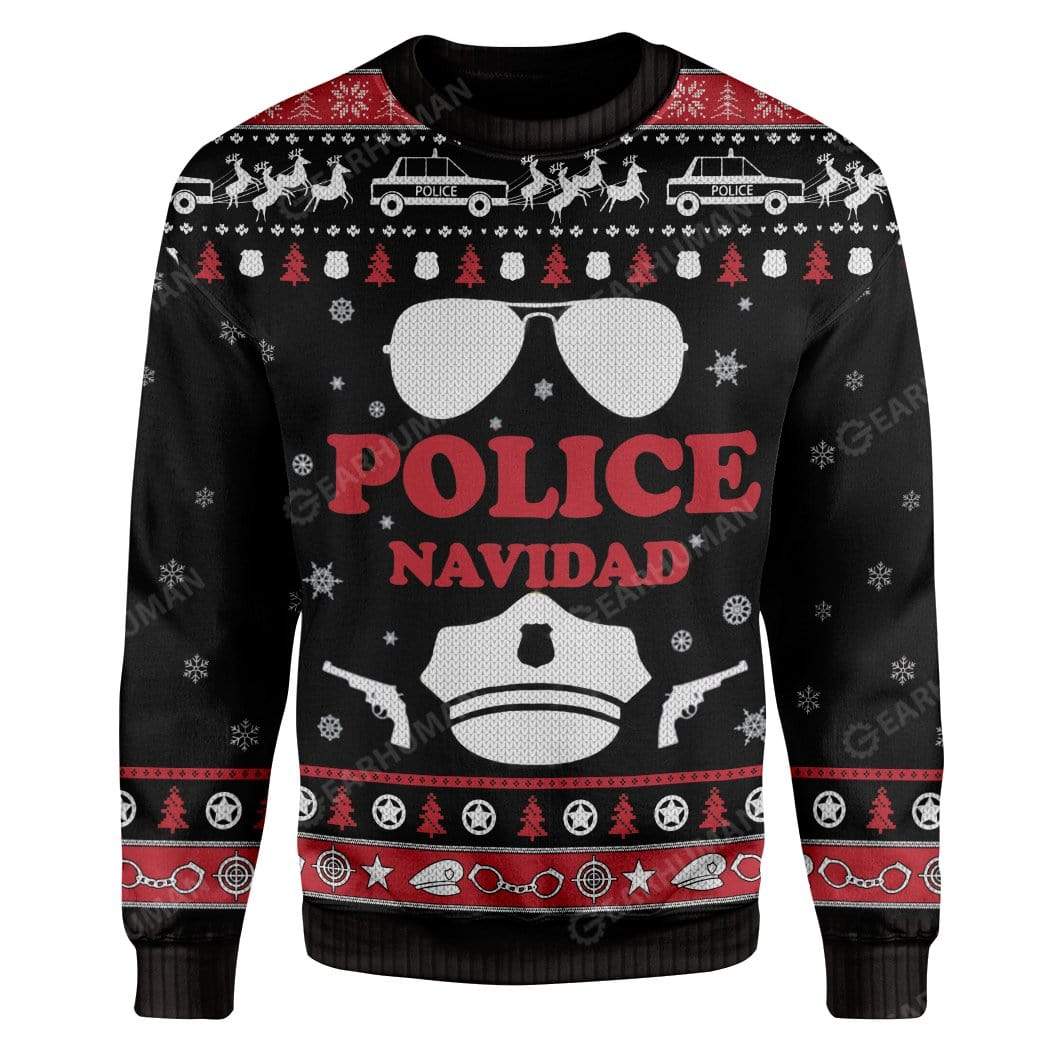 Gearhumans Ugly Christmas Police Navidad Custom Sweater Apparel