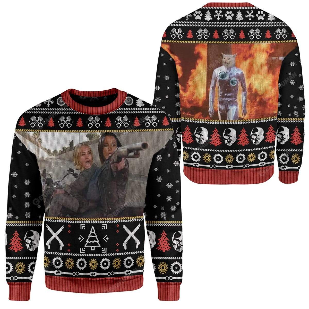 Gearhumans Ugly Woman Yelling At A Terminator Cat Custom Sweater Apparel