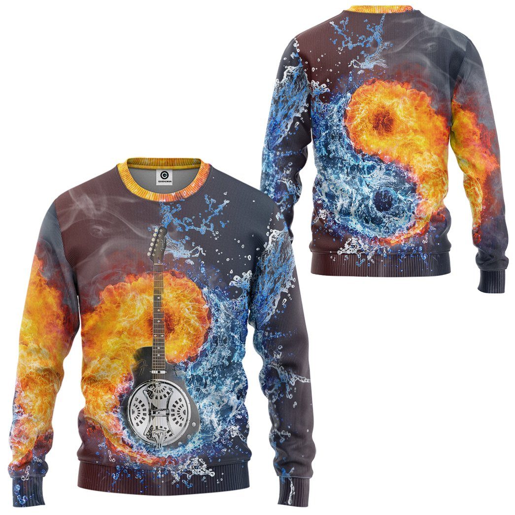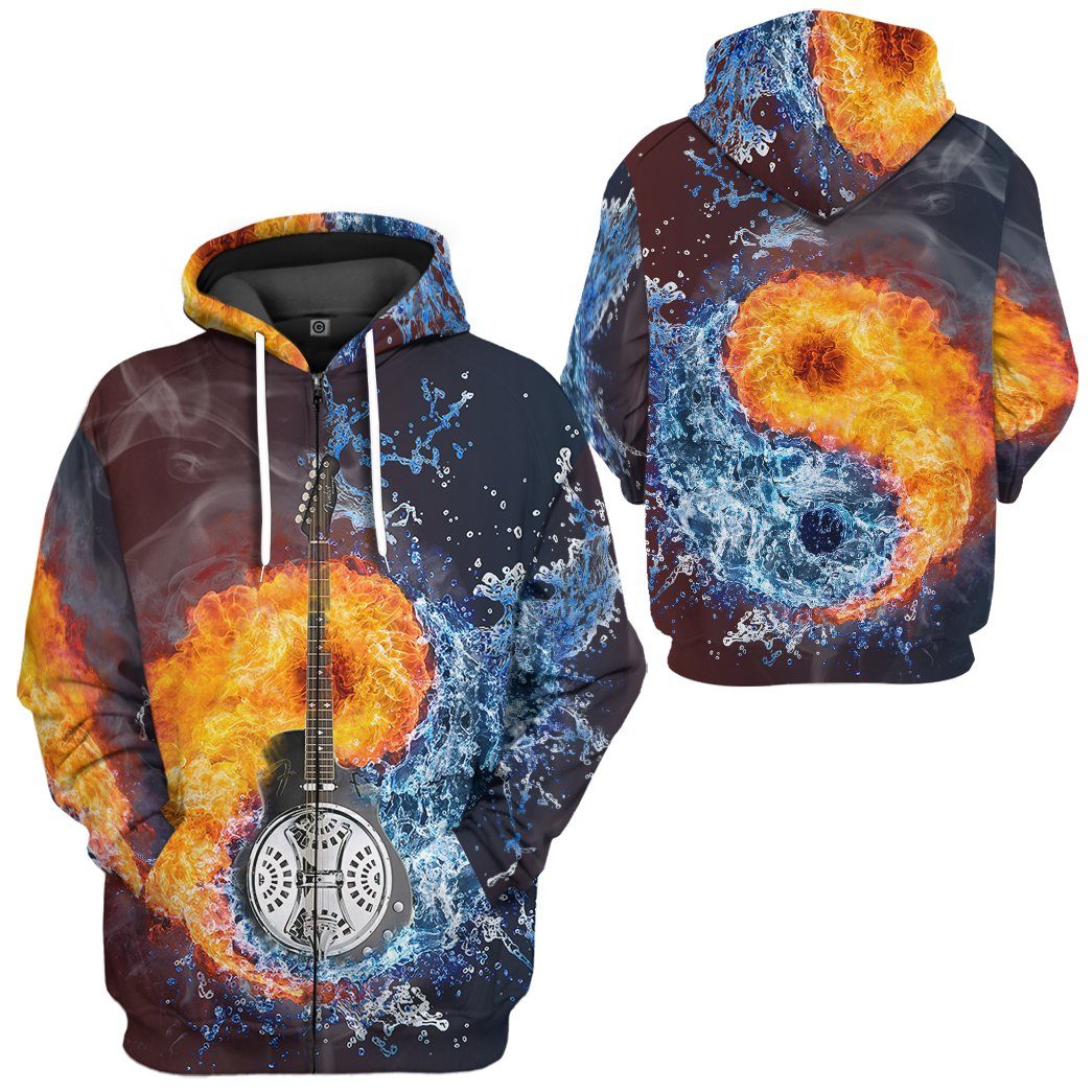 Gearhumans GearHuman 3D Water Fire Dobro Guitar Hoodie