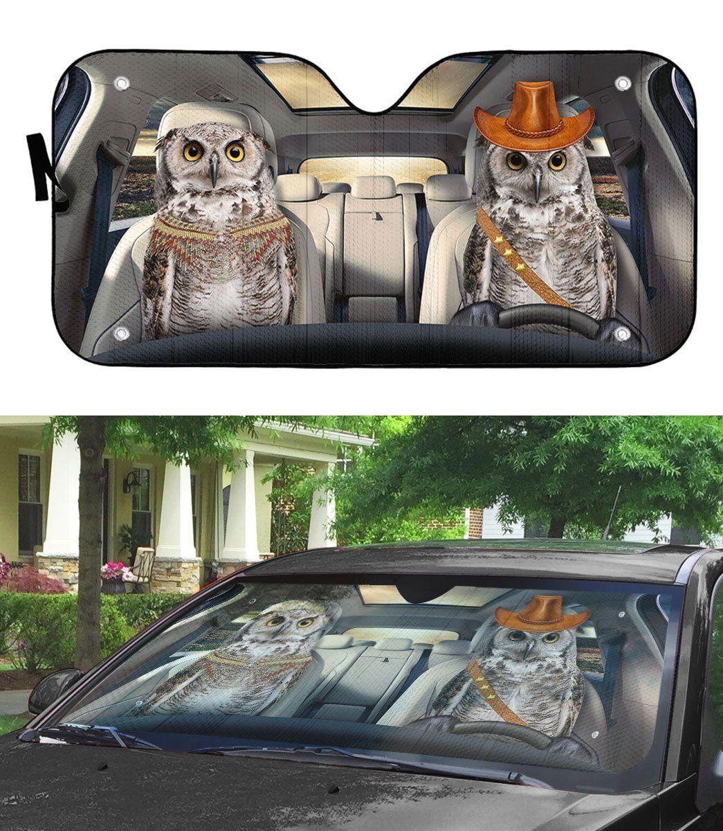 Gearhumans 3D Couple Owls Auto Car Sunshade