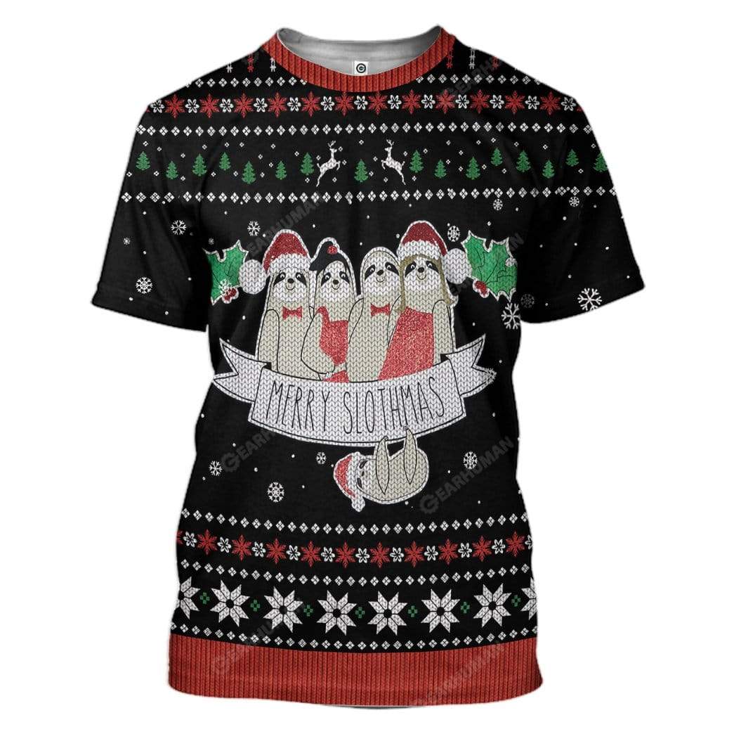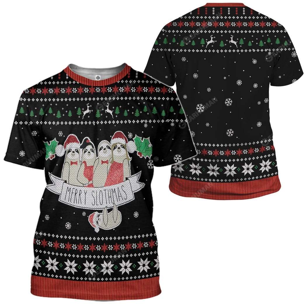 Gearhumans Ugly Merry Slothmas Hoodie T-Shirts Apparel