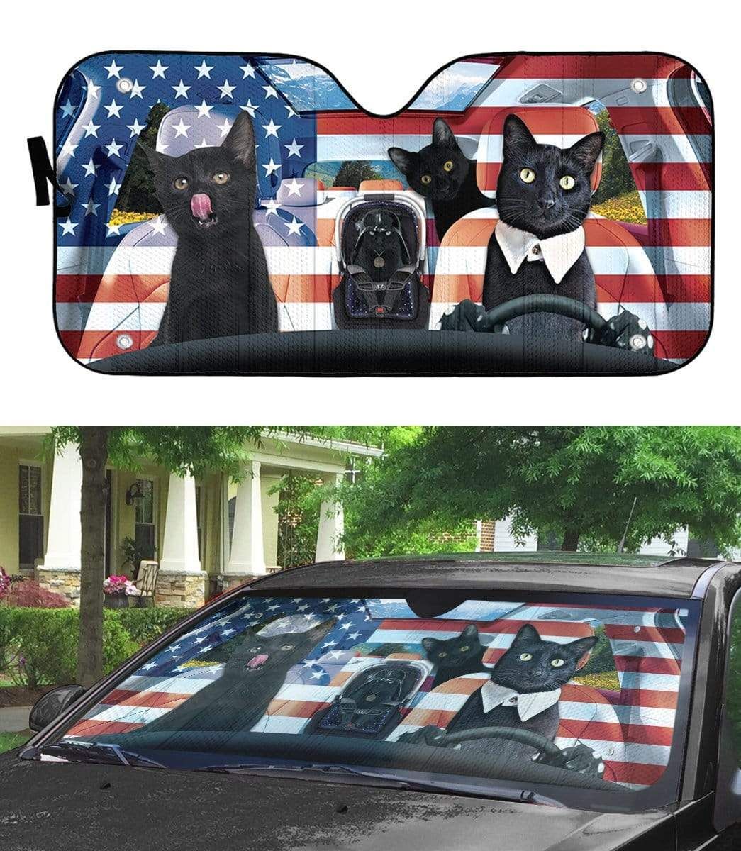 Gearhumans 3D Black Cat Family America Custom Car Auto Sunshade