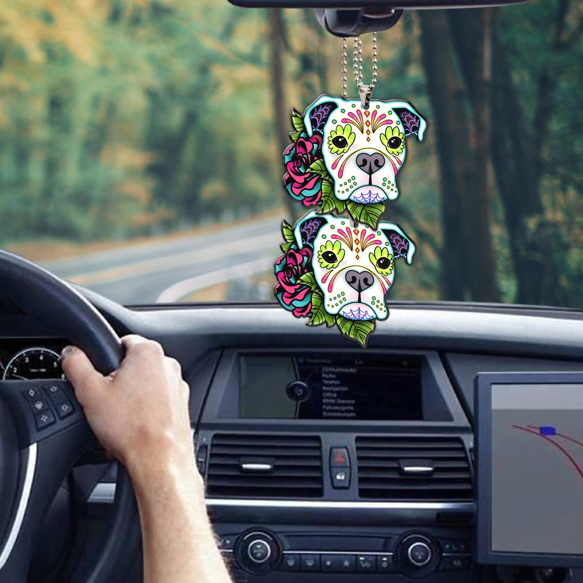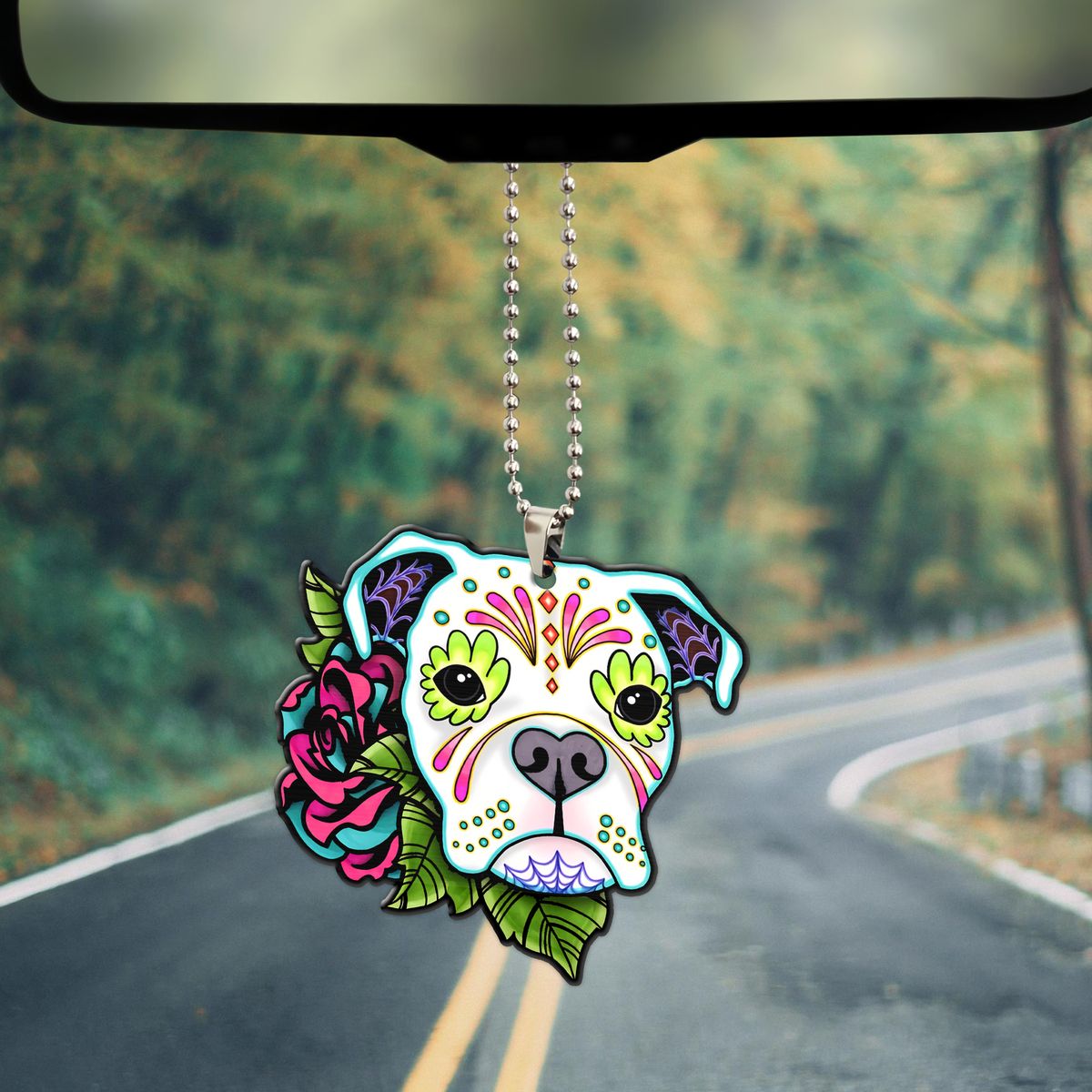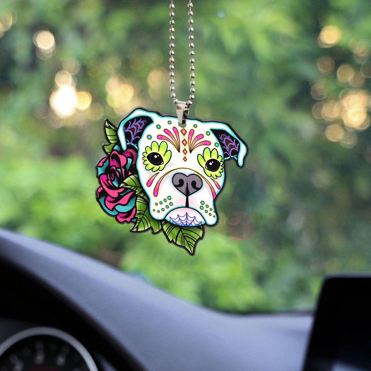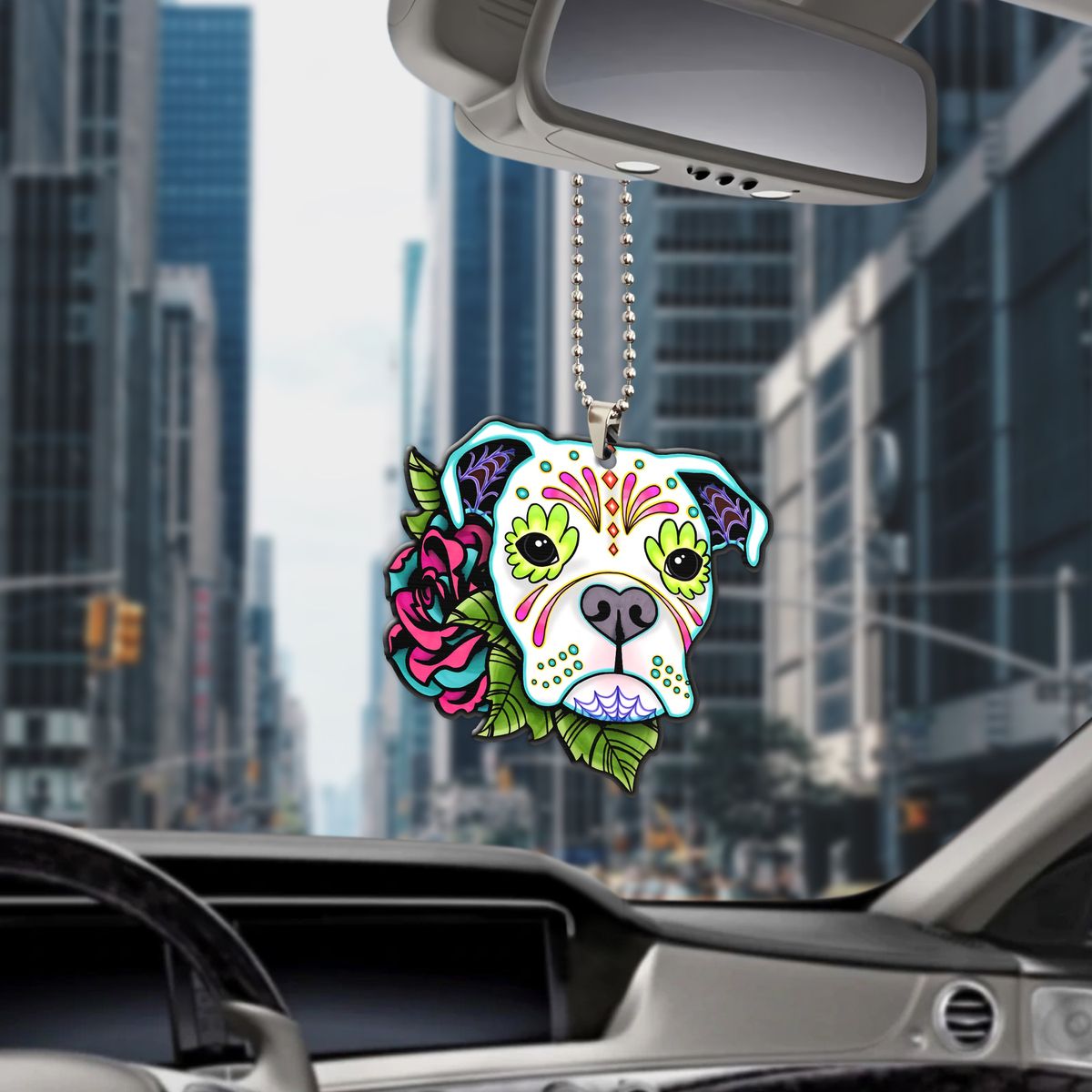 Gearhumans 3D Sugar Skull Bull Dog Custom Car Hanging