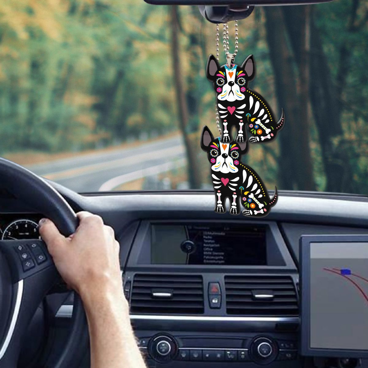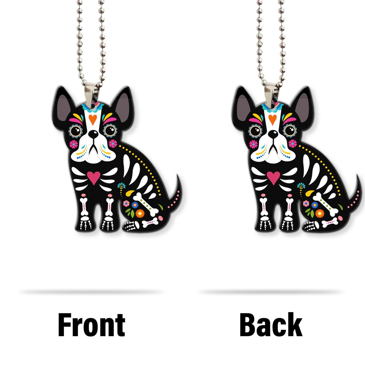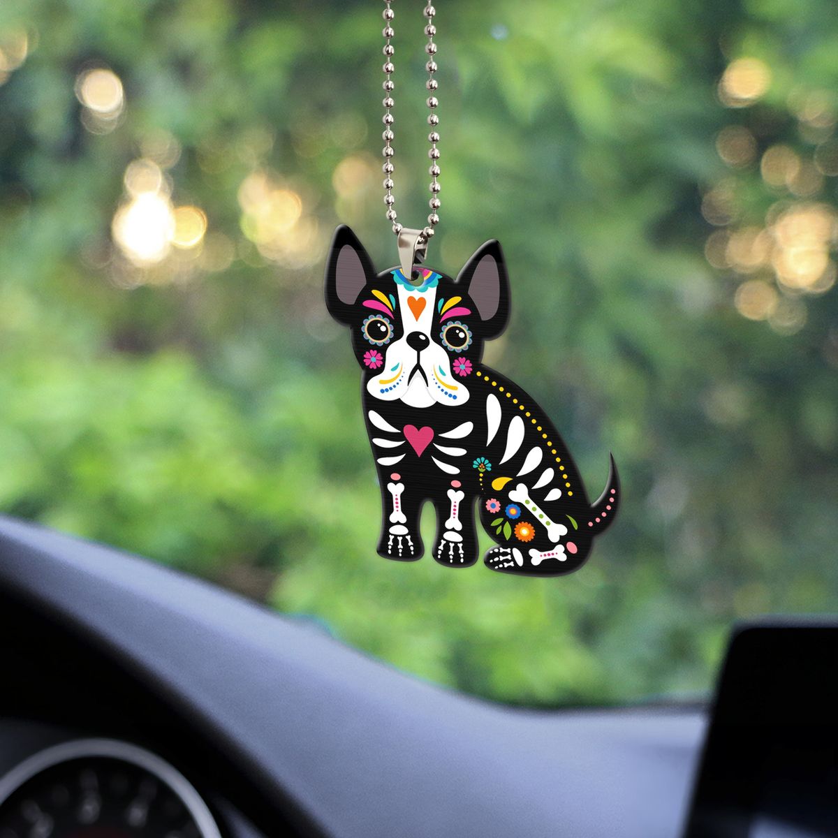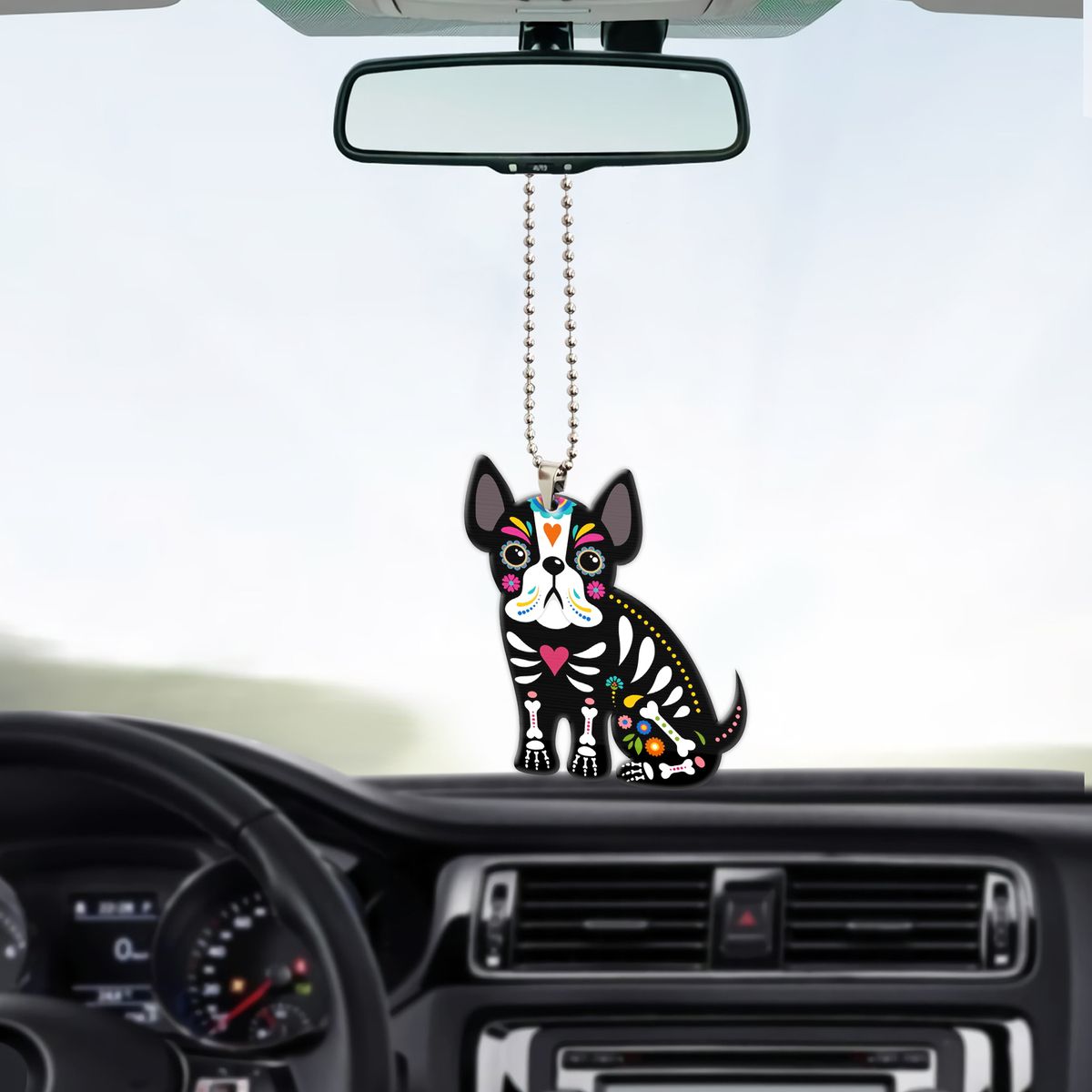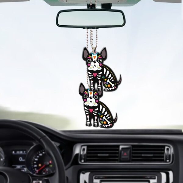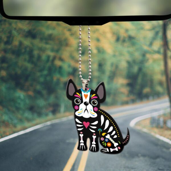 Gearhumans 3D Sugar Skull French Bulldog Custom Car Hanging