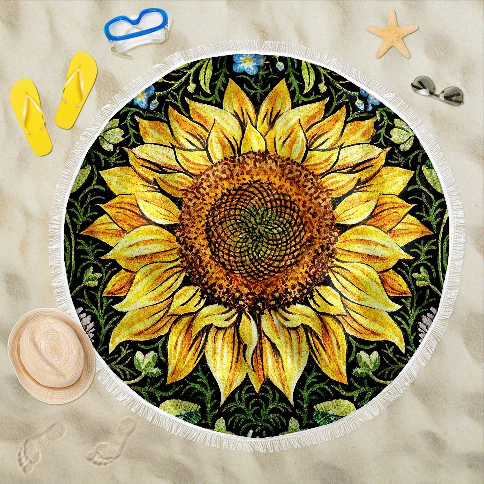 Gearhumans 3D Sunflower Custom Round Beach Towel