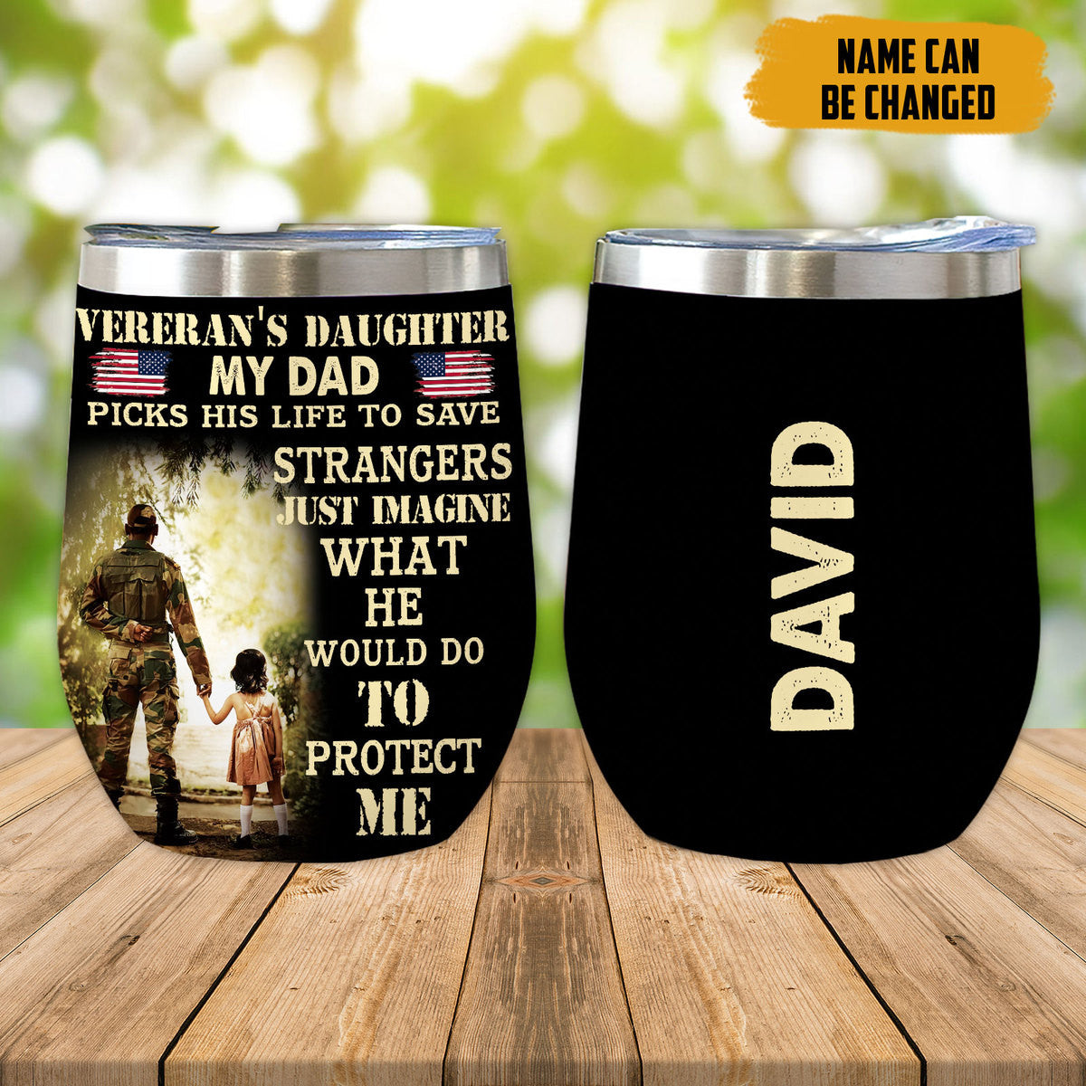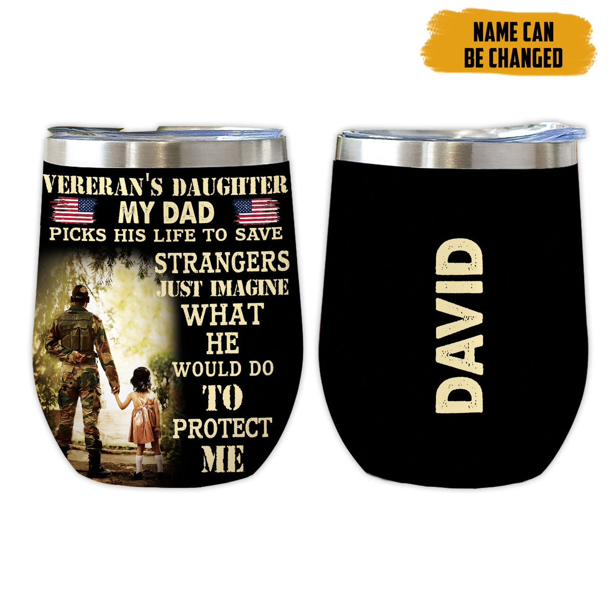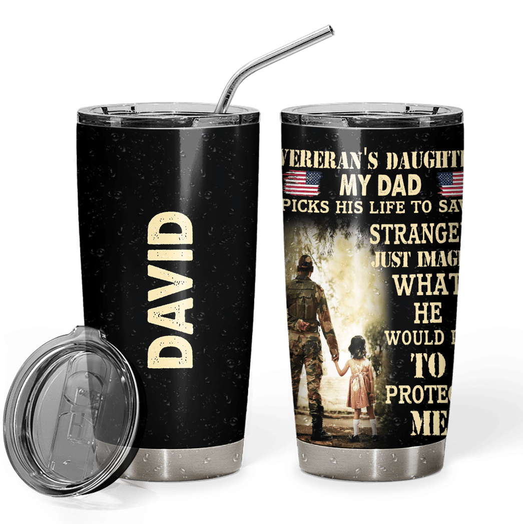 Gearhumans 3D Veterans Daughter Fathers Day Custom Name Tumbler